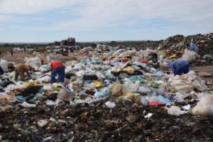 Wir treffen uns auf der Mülldeponie mit den „Catadores“, den Mülldammlern. 42 Menschen sortieren den abgeladenen Müll. Sie wohnen in unmittelbarer Nähe der Halde. Jeder sammelt auf eigene Rechnung. Es ist hier nur Hausmüll deponiert. Krankenhausabfälle, Schlachtabfälle und Fäkalien werden an anderer Stelle deponiert. Gesammelt werden Flaschen, Pappe, Konserven und Plastik, die mit einem LKW von einem Zwischenhändler abgeholt werden. Ein LKW voll bringt etwa 600 Reais.